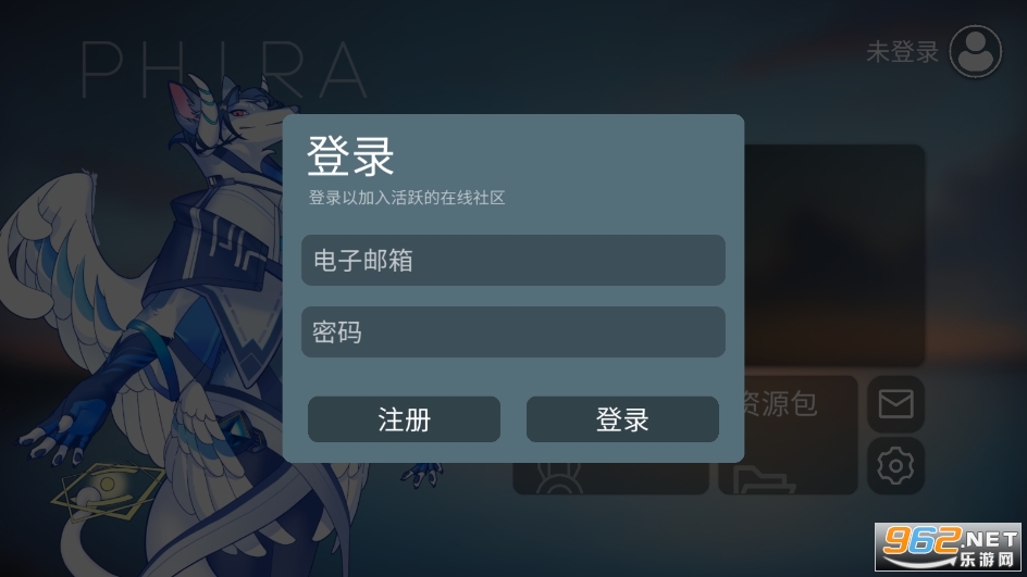 1、下载安装好phira模拟器最新版,运行游戏,进入主页面,点击右上角的人像;