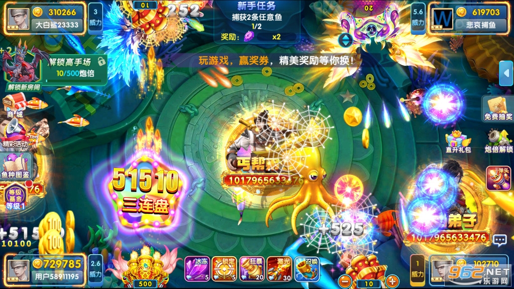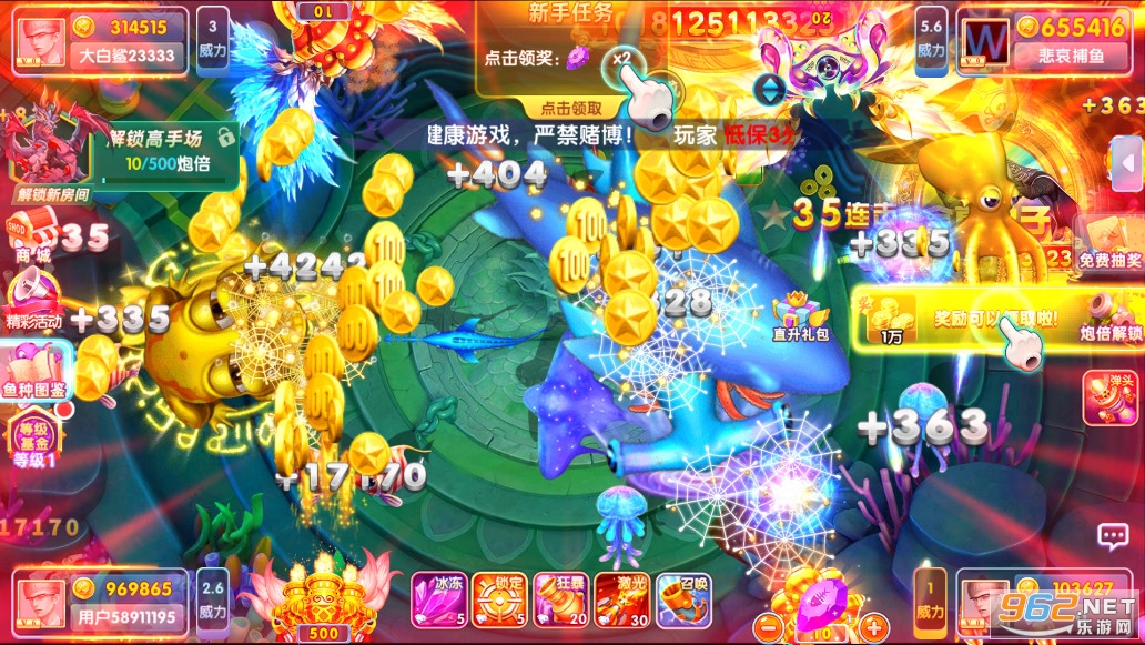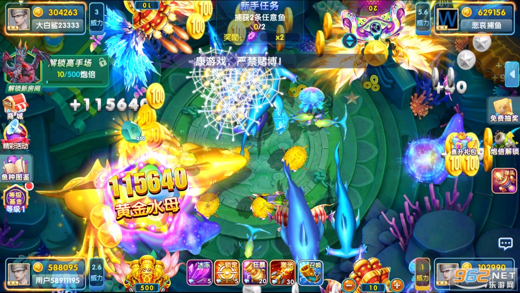2、金币不多时,建议多捕获小鱼,慢慢积累金币,等到积累一定程度之后,一般鱼群也刚刚好出现,这个时候一定要把握好时机,将鱼群收入囊中,使自己的财富更进一步,然后把目标对准BOSS,一步一步往高处走。