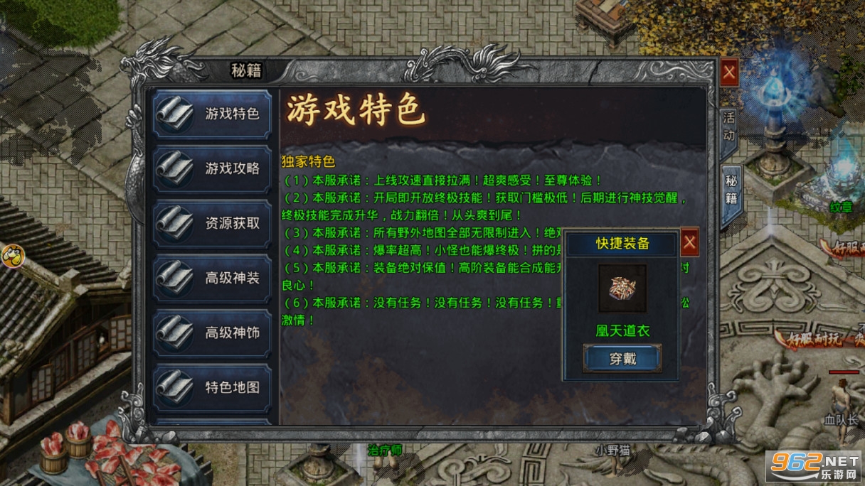 2、更重要的是,这个版本还有个特殊的装备极品系统,装备等级越高,装备的附带属性就越强。而且现在新服刚开,活跃人数是相当多的,根本不用担心玩几天就成死区!