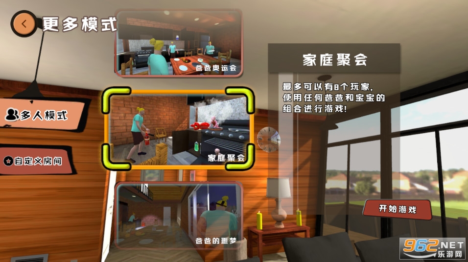 趣味的模拟休闲游戏,可以扮演爸爸或者扮演宝宝去冒险,可以联机玩耍,前往一个个场景去冒险,可以自定义角色的形象,有着多种模式可以自由挑战,喜欢的朋友可以下载试试。