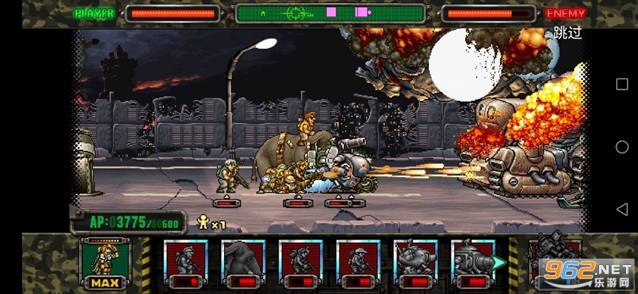 采用经典的2D像素点绘画风,SNK御用画师作画,场景角色完美还原,枪械战车悉数登场。