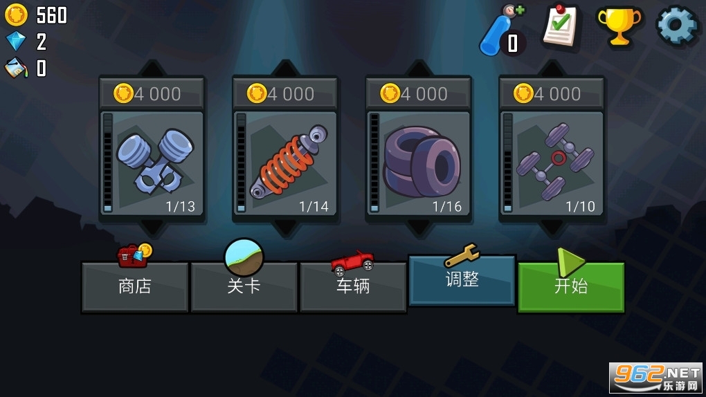 3、升级部件包括发动机、悬浮、轮胎和四轮驱动4、无论设备分辨率如何,游戏画面都非常吸引人。