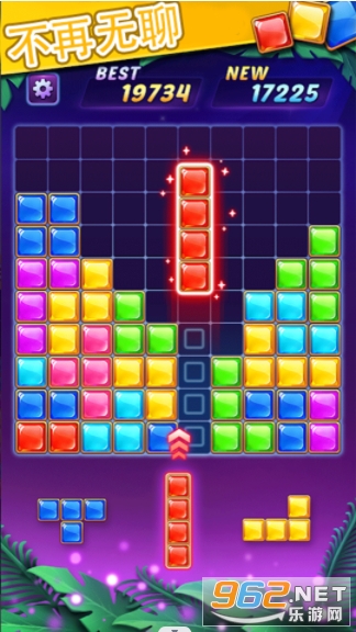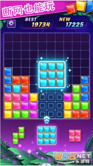 拖动模式:将屏幕下方的三个方块拖入宫格中,一行或一列铺满即可消除。在确保后续方块可放的情况下,实现消除!变幻莫测的出块模式,营造出紧张刺激的消除体验!