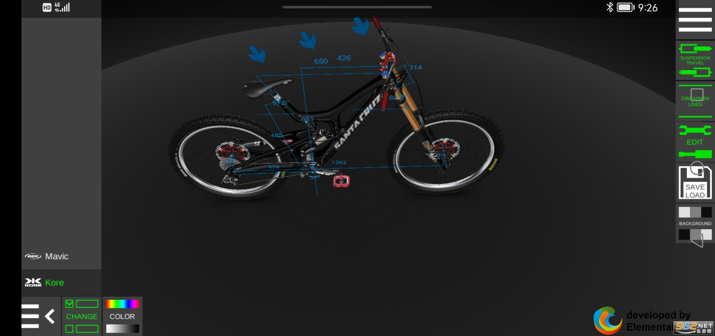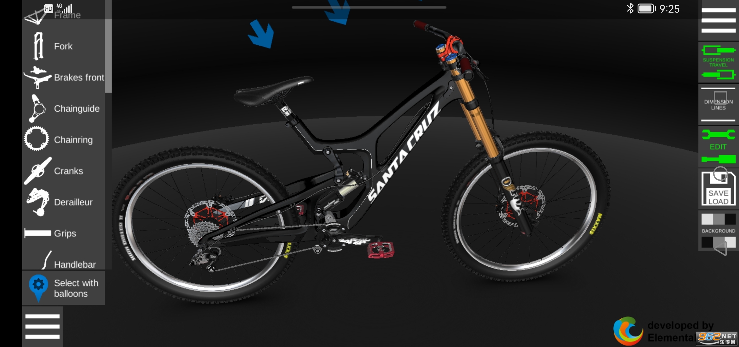 更改颜色、车架尺寸、前叉行程、车轮尺寸