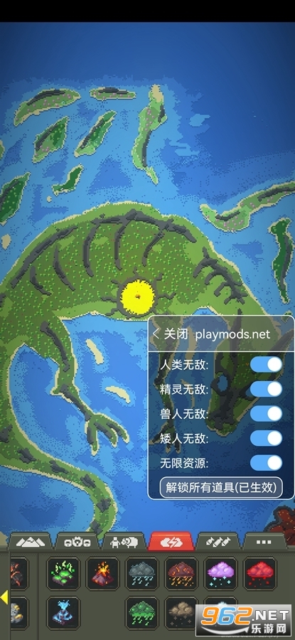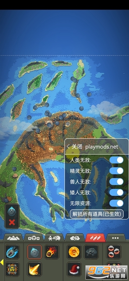 《上帝模拟器》(world box)是一款像素沙盒模拟游戏,此版本修改了无广告,大家可以免受广告的烦扰,自由的使用游戏里面的各种生物,不同资源和岛主,模拟神的日常,在这里自由自在的进行创造,用一只手就可以打造一片属于你的新天地,感兴趣的亲们可以下载!
