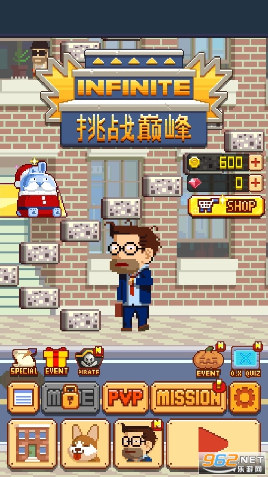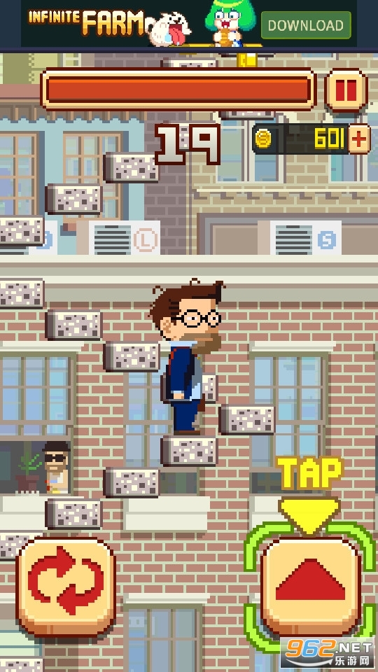 《挑战巅峰Infinite Stairs》是一款像素风格的敏捷游戏。游戏中玩家要不停的攀登阶梯。游戏中有两个控制键,一个转身,一个向上攀登。不管是人生巅峰还是山的巅峰,大家都向着巅峰挑战一下吧!玩法看似简单,实际不然,非常考验你的反应力哦,游戏中金币无限,快来挑战排行榜的最高纪录吧!