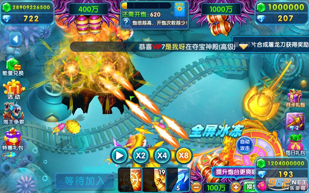 1.多样技能,神秘海域高倍BOSS来袭,金币、弹头更易获得,爆金更多!
