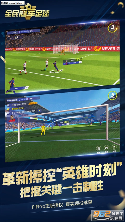 《全民冠军足球》是腾讯首款策略经营足球手游,由FIFPro正版授权,拥有63个国家协会及百家俱乐部超过五千名现役球员肖像权。真实球员参与动作录制,领先动作捕捉技术3D建模,高自由度真实赛场体验。独创”英雄时刻”等进化玩法,精准还原比赛实况,绿茵激战从未如此酣畅!丰富的球星养成、俱乐部打造、多种巅峰挑战赛事,让玩家体验亲临比赛现场般的操作感受!