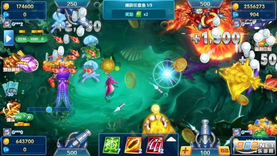 4.多种特殊鱼玩法、炸弹蟹、钻头蟹、闪电鲨、烈焰风暴、神龙转轮、狂暴海王、暴富无上限