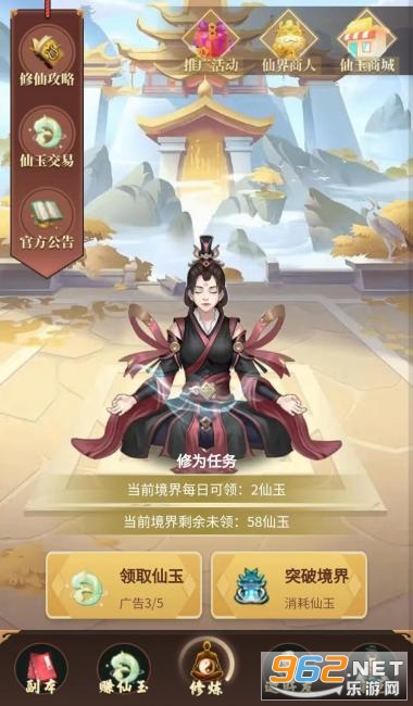 1、每日免费领取仙玉(弟子每天领取仙玉奖励你5%仙玉奖励)