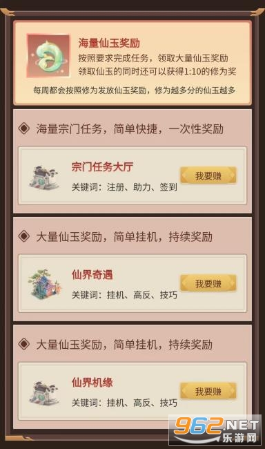 2、完成悬赏以及试玩都会奖励大量仙玉(弟子完成任意悬赏试玩奖励你10%仙玉奖励)
