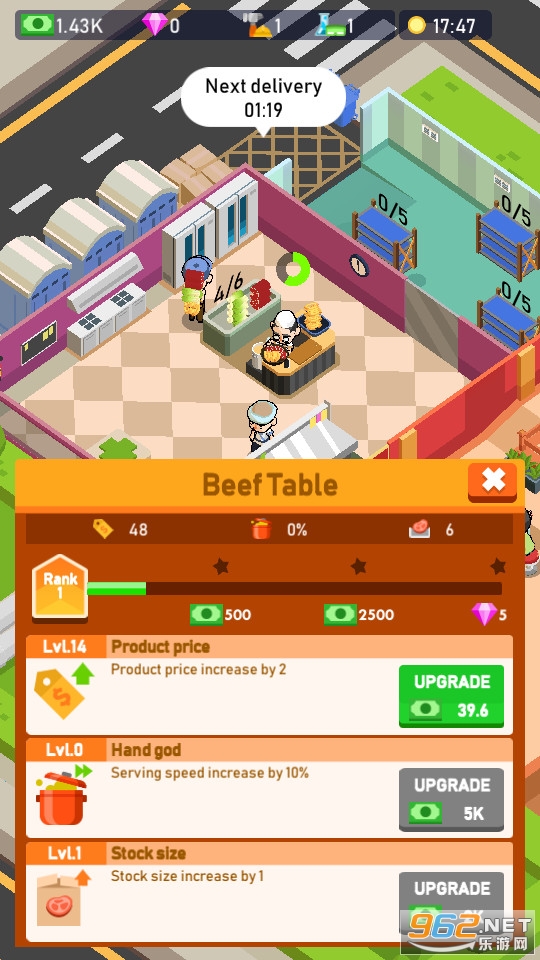 非常有趣的放置经营类的休闲游戏,玩家需要对各种设备进行升级,不断的招揽更多的员工,把自己的面馆经营的越来越好吧!