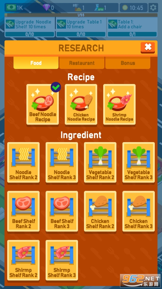 1、独特的放置模式,让玩家可以轻松地经营面馆,享受到无穷的乐趣和收益。