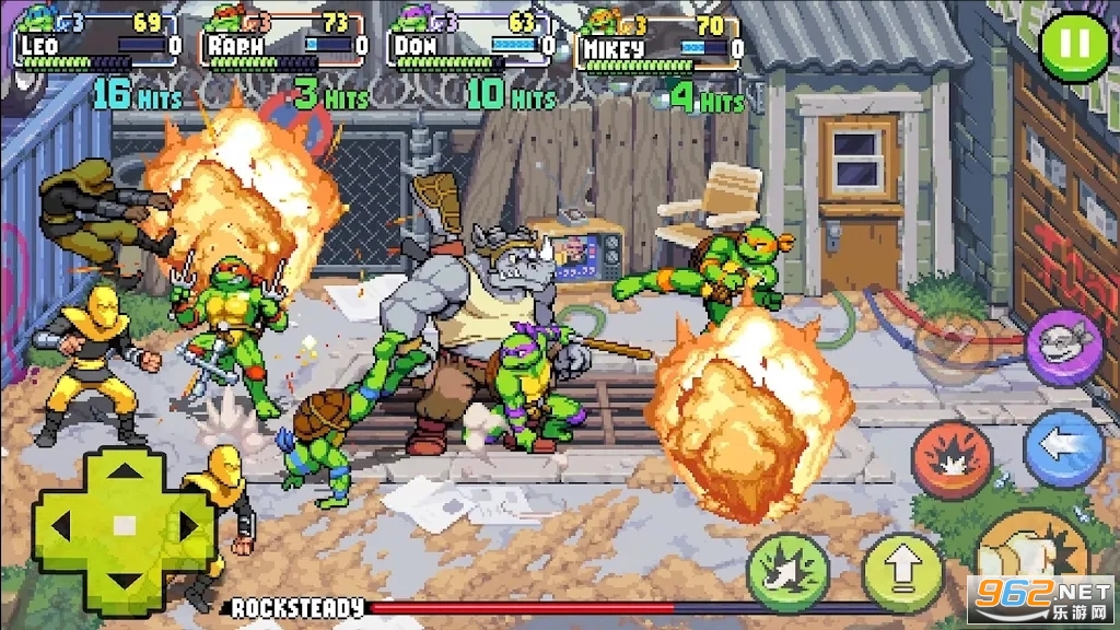 它根植于永恒的经典清版闯关机制,由Dotemu和Tribute Games的游戏专家为您带来极致的打斗体验。在精致的像素画面中干掉成吨搞笑的敌人,操作你最喜欢的忍者神龟,每个角色都有自己的技能和移动招式。