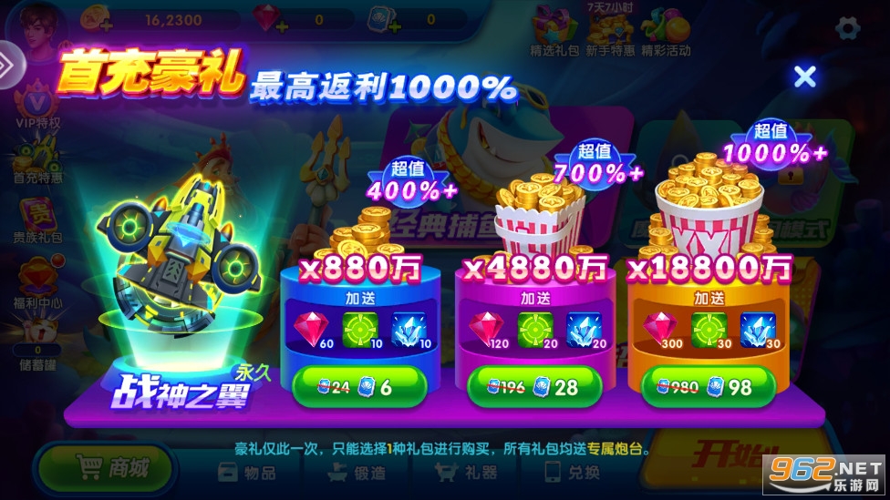 锻造强力千倍炮,狂暴分身特色技能炫动全场,追杀堵截神秘海底BOSS,一炮捕鱼,称霸深海!
