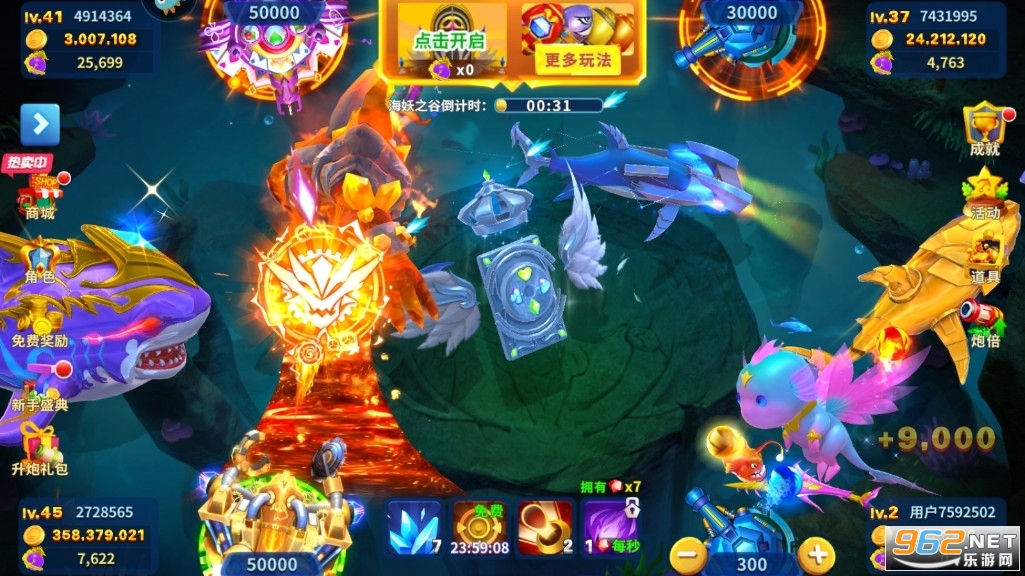 十种捕鱼道具和装备,限次数免费使用,技术好免费畅玩到底。