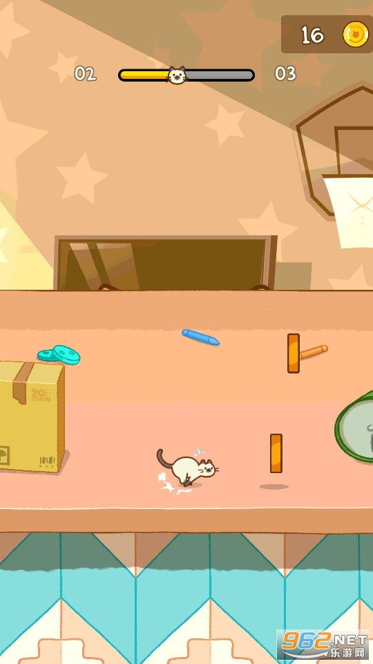 将手指放在屏幕上,让小猫停下来躲在物体后面逃跑