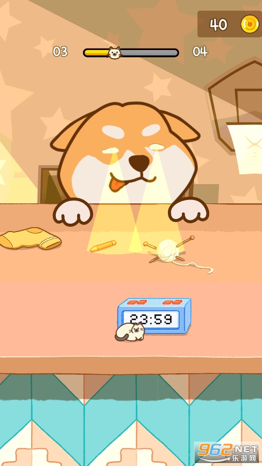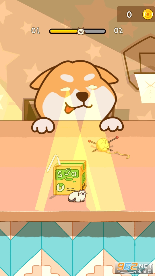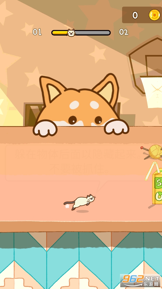 非常可爱的一款以捉迷藏玩法为核心的休闲游戏,玩家在游戏中需要选择合适的时机按压屏幕控制好小猫咪躲藏在物品后面,千万不要被柴犬发现哦!