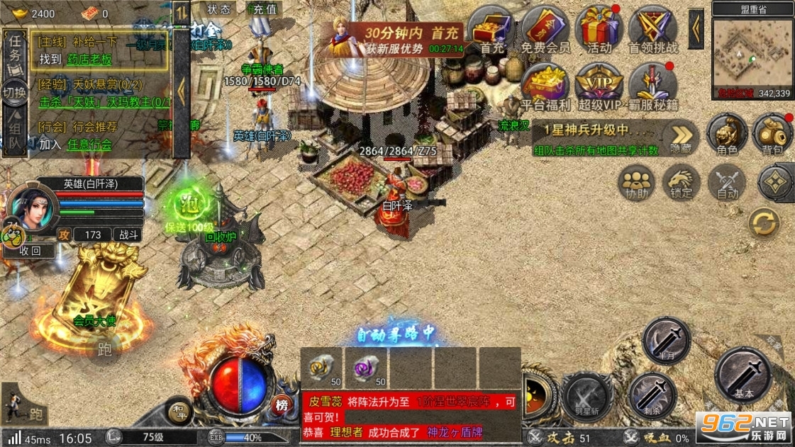 自动挂机,吃血药蓝药都能一键设置,绝对的省心,简简单单就满级;