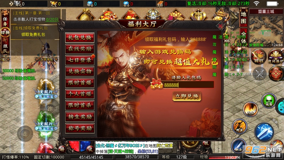 6、怒刷大boss,刷副本,掉落的装备可以兑换更多的技能,自由挂机升级,想要快速升级设置一键挂机轻松解放双手。