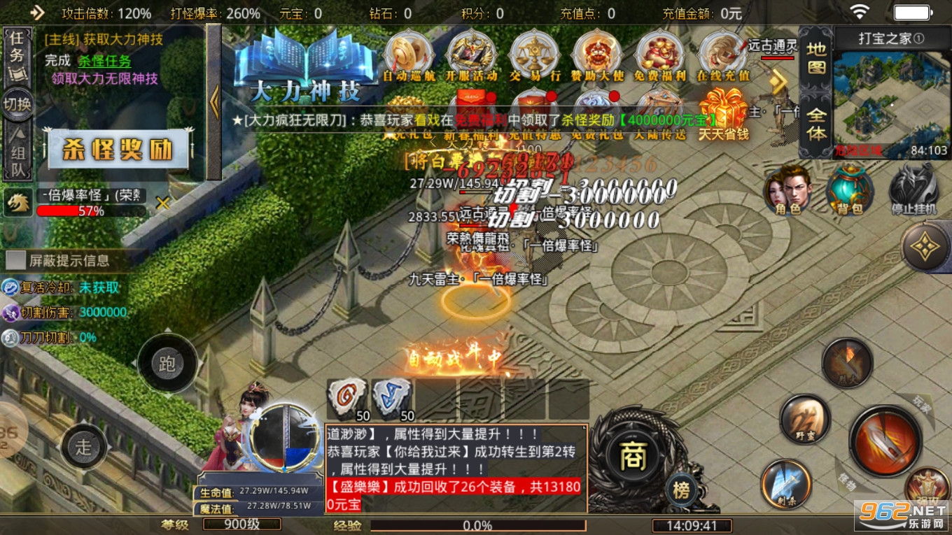 《大力疯狂无限刀》一款爽快的超变传奇手游,上线直接领取新手福利和各种礼包,获取超多资源和装备,直接开启大力神技,轻松杀怪。同时杀怪还能积攒杀怪值获取充值奖励,游戏的玩法爽快,特效炫酷,赶快下载体验吧!