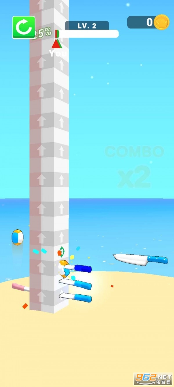 1.不断进行闯关,提升飞刀射击技巧,轻松通关。