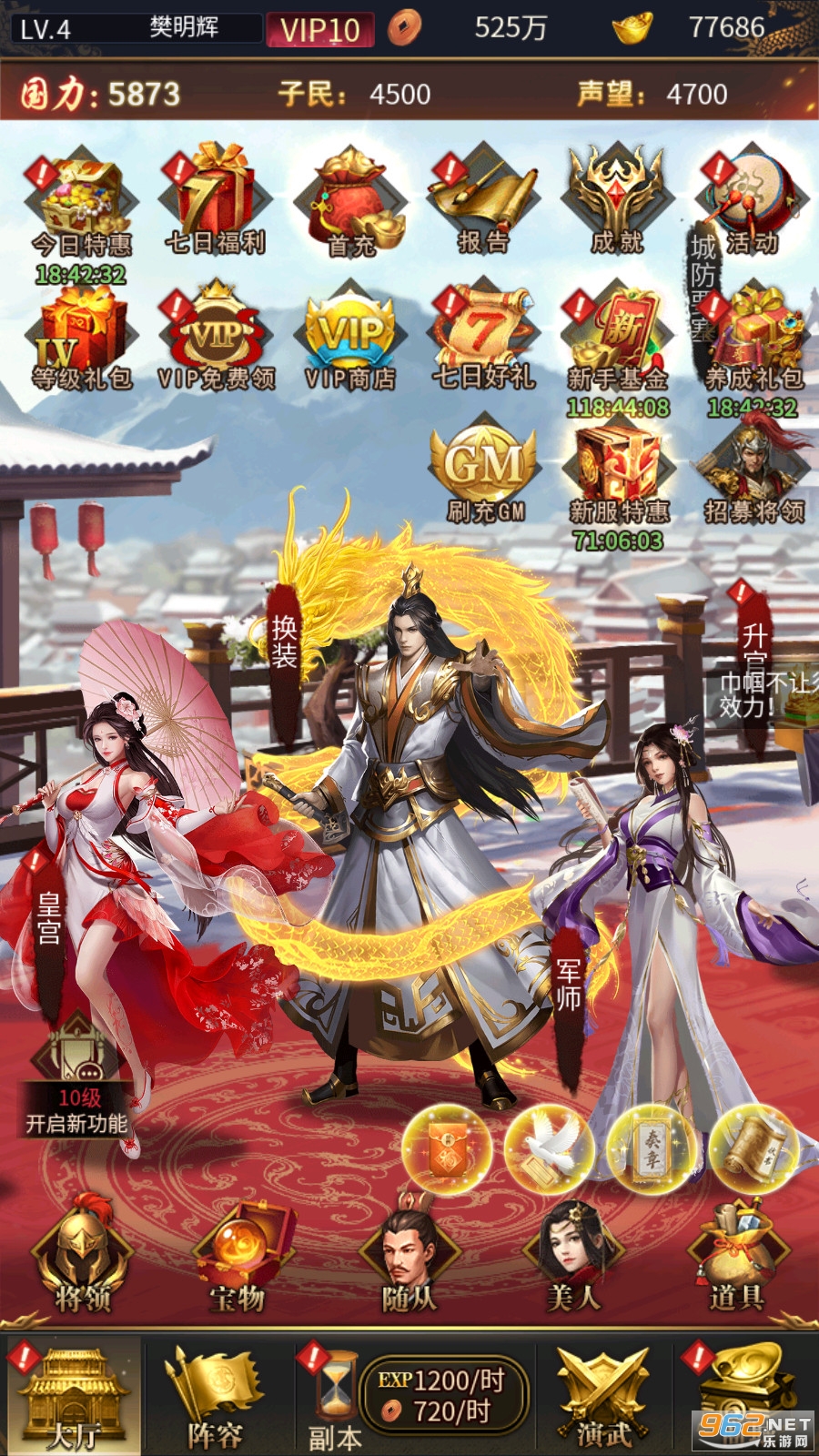 ★上线福利:VIP10、元宝*66666、铜钱*500万、幸运币*66