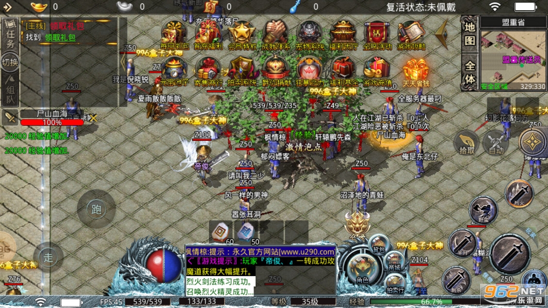 5、原汁原味呈现经典传奇游戏特色,沿袭传统战法道三职业,各职业有其不同属性及炫酷技能,玩家可根据喜好自由选择;