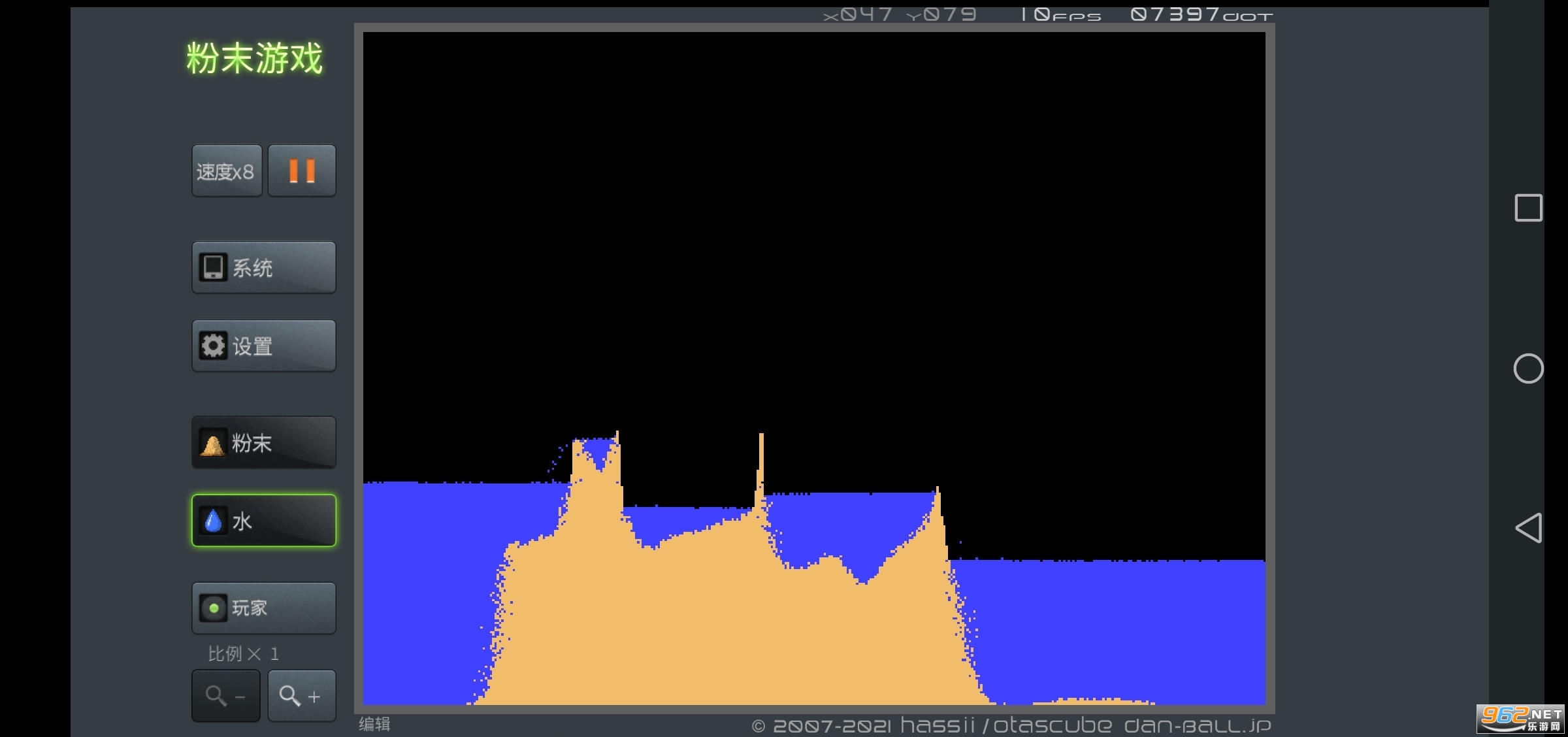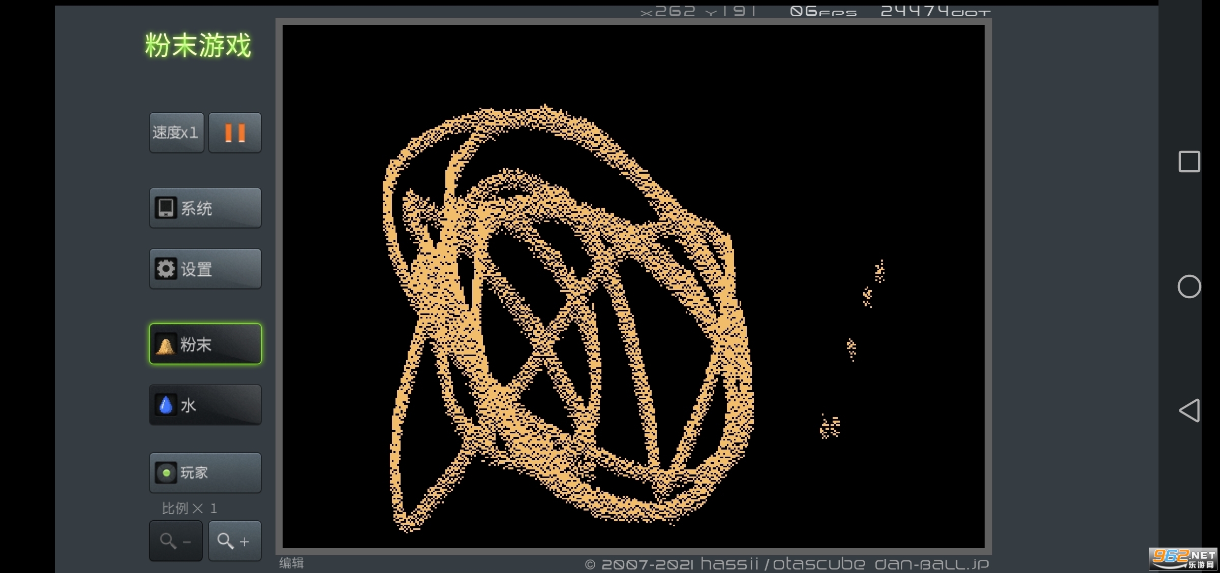 从蚂蚁、战士、风、火、水、岩浆到玻璃、沙、种子、云…选定以后往屏幕上轻轻挥洒,纷纷扬扬的粉末就开始沿着自己的固有规律运作起来