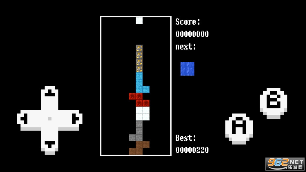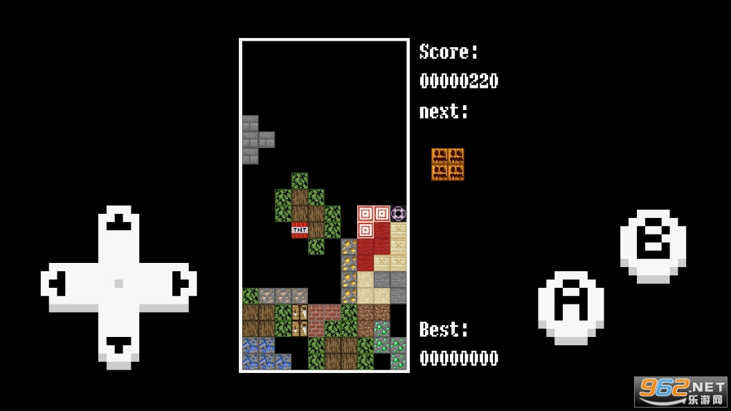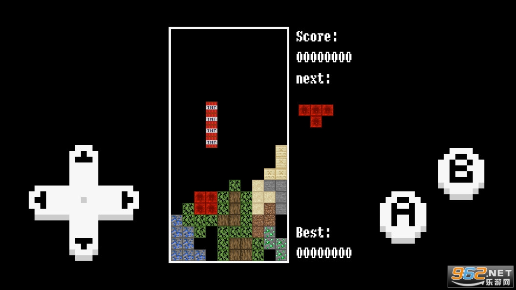 《TetrisM安卓版》是由B站UP主马克杯MarkCup制作的一款俄罗斯方块类休闲手游,加入了我的世界元素,有着各种不同颜色和样式的像素方块,玩家可以点击B键来变换方块方向,点击A键可以快速下落,还有着炸弹方块、岩浆方块等特殊方块出现。