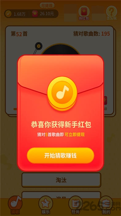 4、根据前奏进行猜歌答题,答对闯关就能领取红包,每日挑战趣味多多;