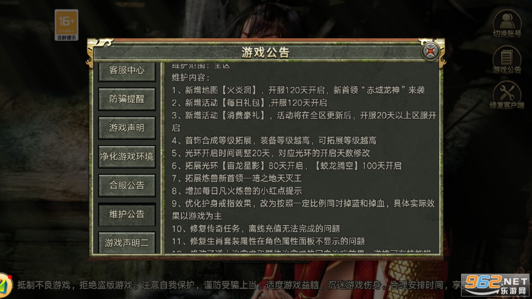 1、新增地图【火炎洞】,开服120天开启,新首领“赤域龙神”来袭