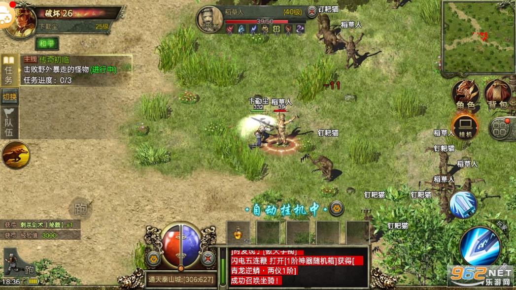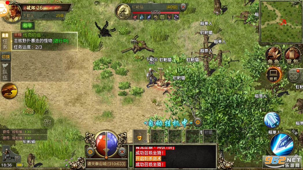 等到到了27,30的时候,有钱的朋友无聊了还可以去打狮子(不用想了,就是真天宫的那个)如果身上有加火,加神圣的装备那就更好了,但是一定要外挂有双倍攻击的哟。但是这种方法还是不要经常去,太花钱了,如果你有许多许多钱的话,去几次也无妨,而且一不注意就爆个38的衣服给你,卖钱得很呢!!!!许多人喜欢去砍祖玛,其实我算了算,根本就不划算,祖玛殿怪物的经验是他血的两倍,一个卫士的血是1300,经验是2600,经验虽然比杀猪的经验高一点,但你不想想,祖玛的防和猪的防差多少?而且要是有两个以上的祖玛围着你,你就要喊痛。狮子虽然防也高,但是一个石头狮子1300的血,就有3800的经验,比祖玛多了1200,血却是一样多的,所以,愿意到祖玛的兄弟,还不如去砍狮子呢。总结下来,到了33级以上,就完全可以去蜈蚣洞去了,经验不错,还有好的极品爆,而且穿了战神后,它打你也不痛了。到了38,就更不用我说了,用连月去砍狮子,快哉!!相信你现在不是在用修罗了,就算是修罗,也是级升满了的嘛。