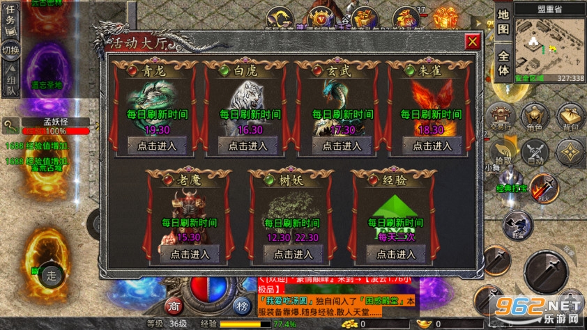【装备等级】:赤月套装-雷霆套装-强化套装-战神套装(顶级) 魔龙教主爆一切.