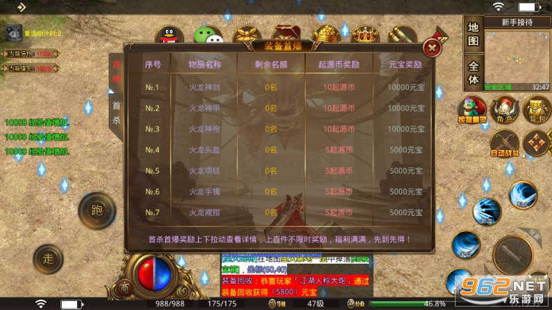 副本Boss:每日中午12点和晚上24点,爆率非常可观,是打装备元宝的绝佳去处
