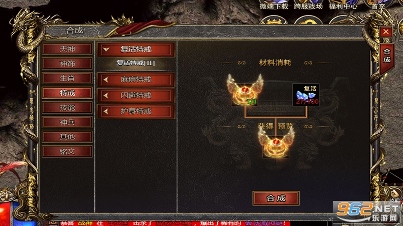 这里还有一个游戏小贴士,背包中的复活特戒碎片可以在合成系统之中合成复活特戒,能够帮助你在地图挂机过程中直接回城复活不受死亡惩罚。