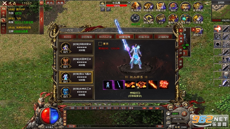 最后想在游戏初期便取得巨大优势,等级属性快人一步,可以在商城中购买道具,附加的高额对怪增伤和受怪减伤属性,再加上仙位赠送的神装,足以无伤越级打怪,快速升级瞬间与他人拉开差距!