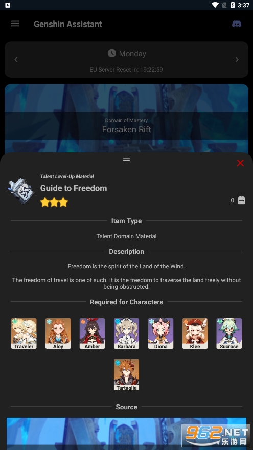 《原神助手app》又名《Genshin Assistant》,之专门为玩原神游戏的玩家打造的一款游戏工具,在这里你可以了解角色构建指南,每日域名,材料需求指南,查看互动地图,每日入驻,角色,武器,神器数据库,使用树脂再生追踪器,愿望/怜悯追踪器等等,更轻松的进行游戏~