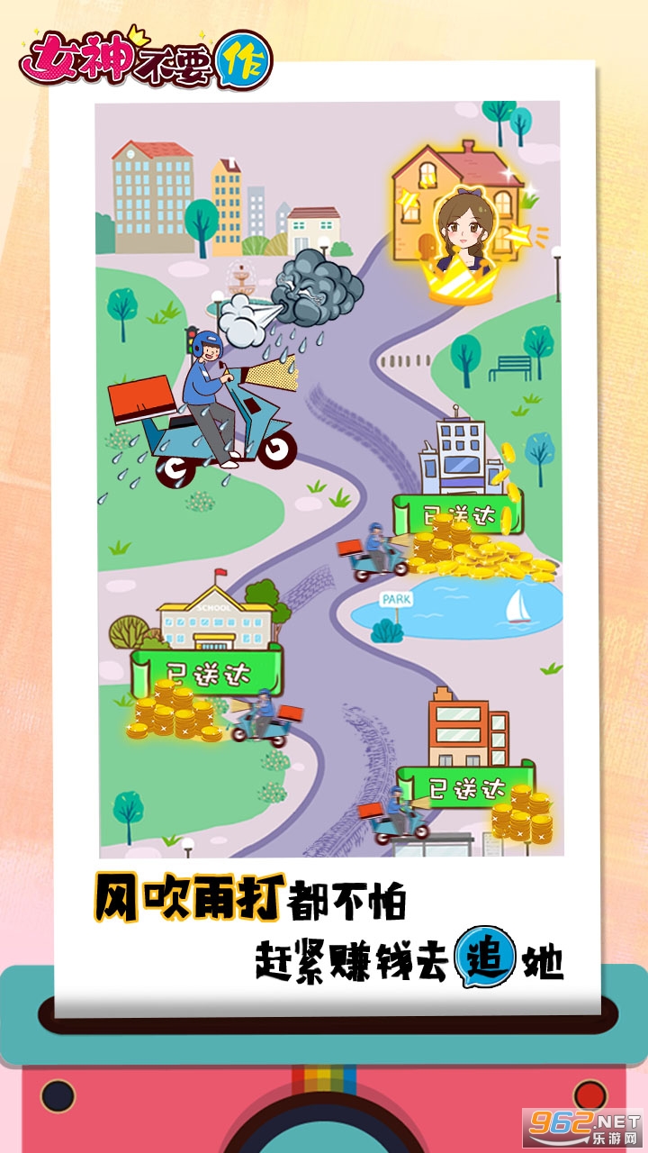 为了博得女神欢心,努力赚钱买东西讨好她自然是少不了的,赶紧骑上心爱的小摩托,直面逆境,想尽一切办法排除艰险送出外卖吧!