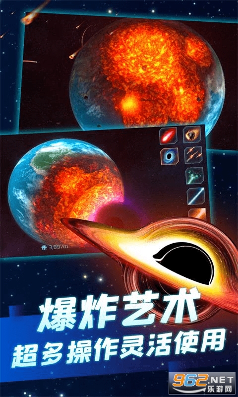 2、星球爆炸效果十分独特,带来精彩破坏玩法,释放心中的烦闷与压力;