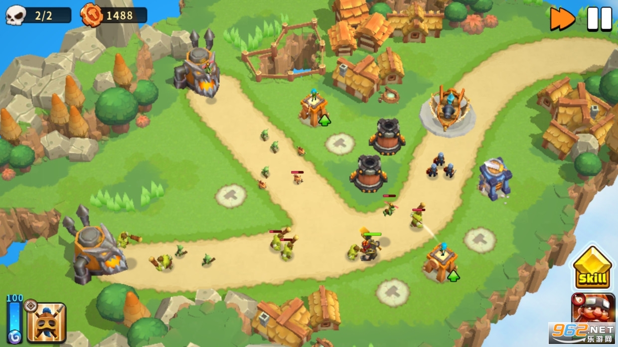 从丛林中的兽人部落,到炎热沙漠中的咆哮巨龙,在这款塔防角色扮演游戏中你可以建造各类防御,招募英雄,以及释放强大魔法来抵抗兽人,僵尸,黑暗精灵等怪物的入侵。