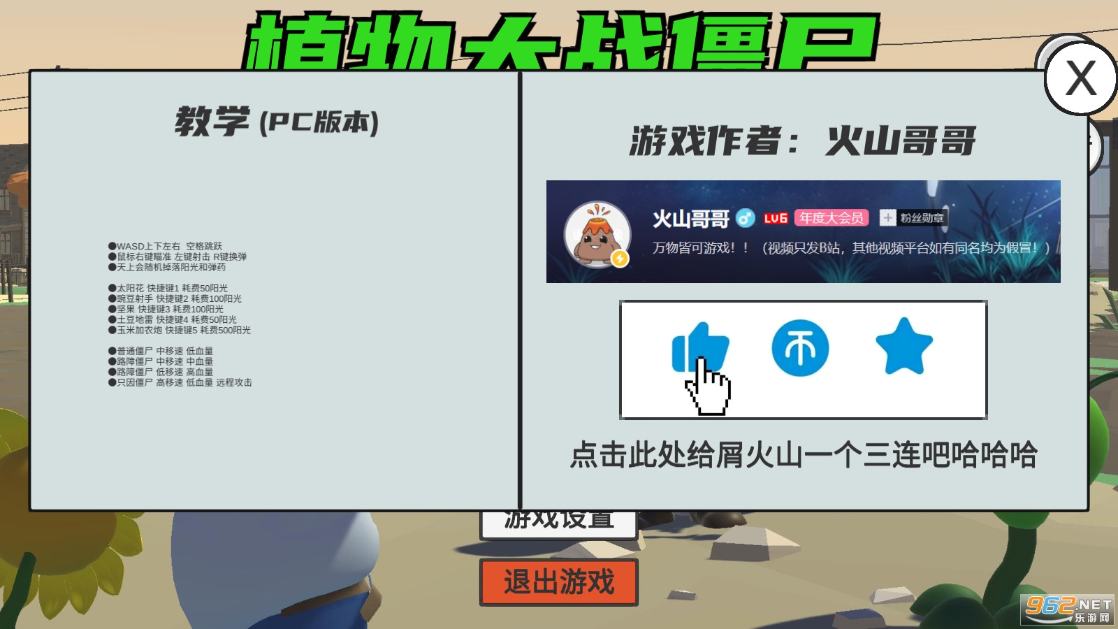 《植物大战僵尸戴夫有枪3D版(PVZ_TPS)》是b站知名游戏up主最新制作,以经典游戏pvz植物大战僵尸为原型打造,整体呈现风格为3d的样式,玩家们将以庄园主人“戴夫”的身份参与到其中,手持猎枪,保卫庄园。