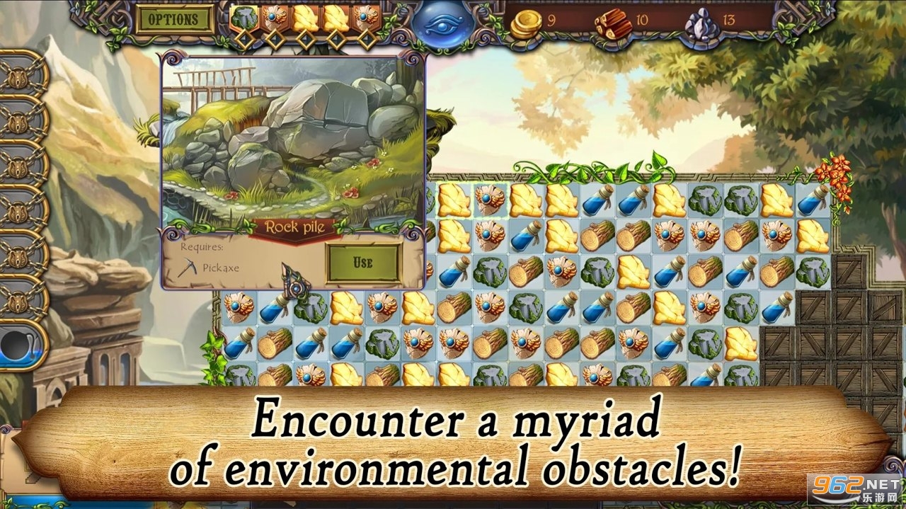 匹配3个或更多的金,石和木块即可获得这些资源。匹配越大,您收到的资源越多。使用您的资源来帮助重建Rivermoor镇。里弗穆尔(Rivermoor)是一个古老的中世纪村庄,在战争期间被遗弃,仅剩3人。他们迫切需要额外的手来赚取足够的钱来支付给王室!