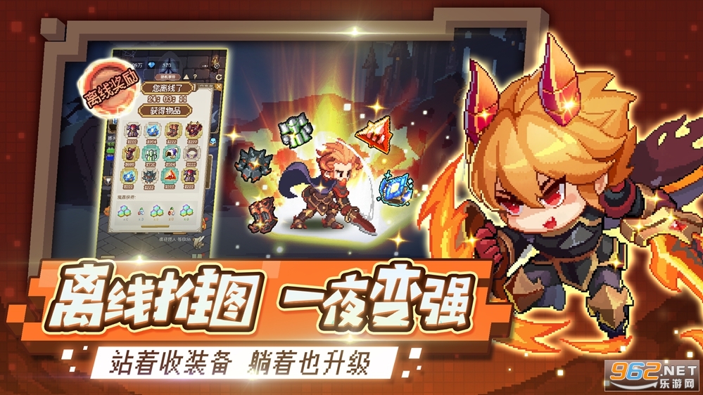在童年时光,我们都热爱那些风靡大街小巷的经典像素游戏,也都有着成为勇者的梦想!在这里,你可以派出勇者,为了保护家园而义无反顾!在这里,你可以为童年的自己一圆勇者之梦!