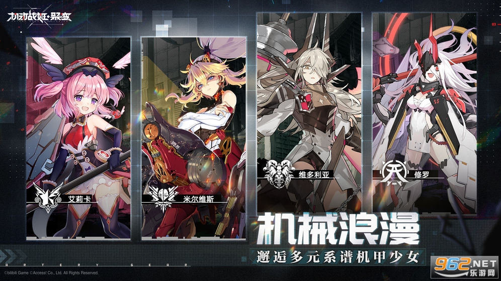 在游戏中,玩家可以遇到各种风格迥异的机甲少女--「Artery Gear」(简称AG),每位机甲少女都拥有自己独特的技能与设定,玩家需要将她们打造成一支战斗小队,与残暴的傀儡进行作战。游戏本身运用了3D与Spine结合工艺,可以模拟多种复杂的动作模组,充分解放角色限制,创作多种结构和体型的角色。同时游戏本身采用了新光照工艺,将角色自发光及粒子渲染效果发挥的淋漓尽致,更突出了游戏整体的科技感,也让每一位玩家在战斗中都能充分享受酷炫的视觉盛宴。