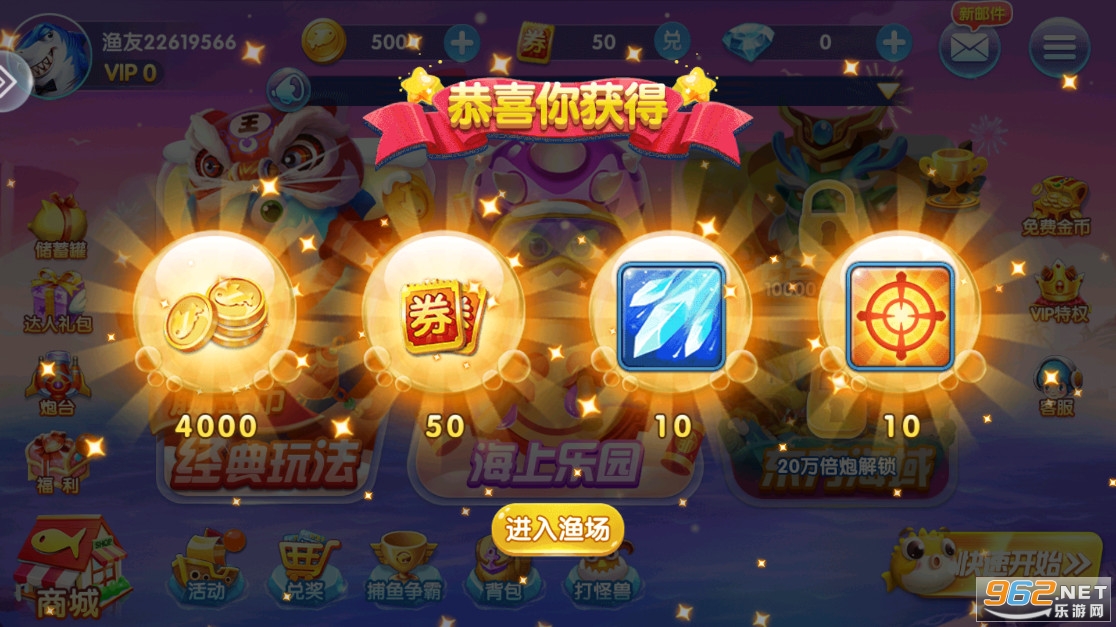 2、捕鱼玩家能够获得超多神器炮台,捕鱼奇兵(赢话费)万炮齐发,各类鱼种轻松拿下。丰富的道具任你使用。