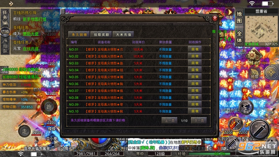4、本服无回血药品◆香肠装备每秒恢复生命值,必升的神器,PK打宝两不误!