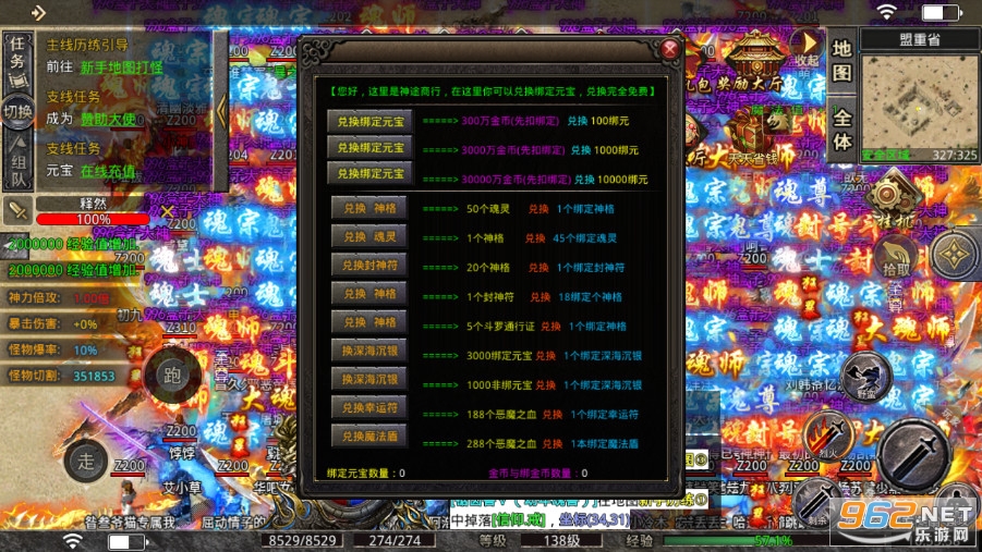 【金币+元宝】游戏唯一消耗货币,本服没有RMB合成。