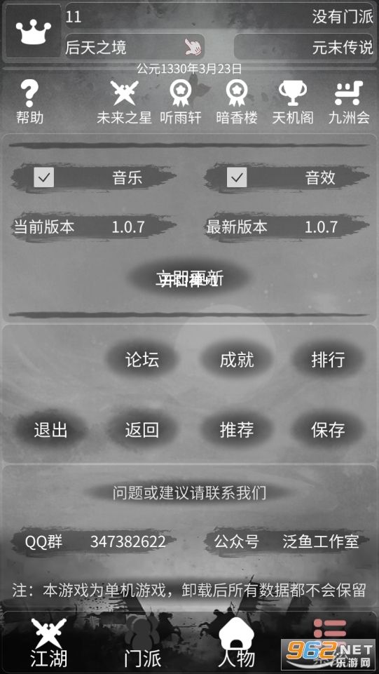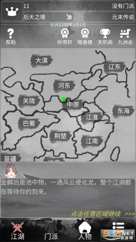 游戏界面非常简单,用文字的形式为我们描述了一个江湖