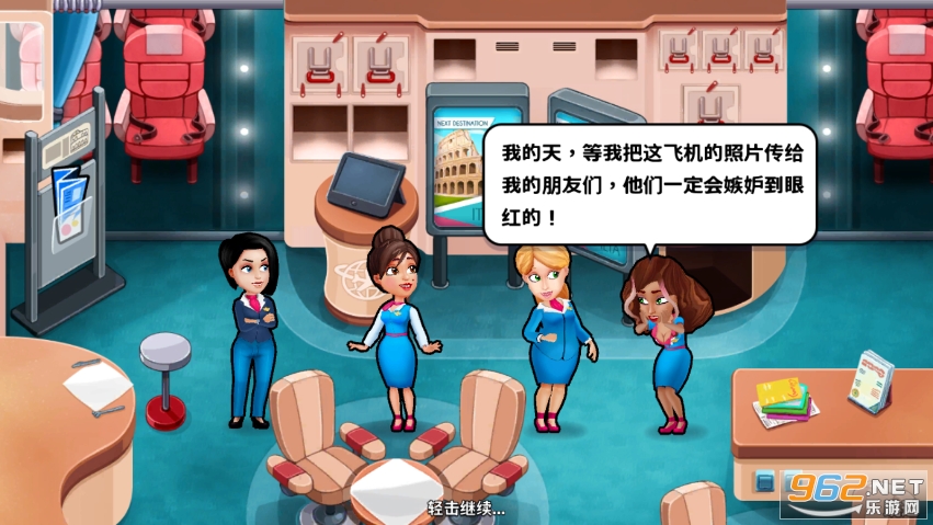 在这款故事类游戏中,你的工作不仅仅是在飞机上帮助乘客。履行空乘职责之余,你还要帮助地面的 VIP 旅客。照看他们的行李、护照和安全。在游戏中,你要确保他们的信息和装备齐全,可以充分享受他们梦想的假期。让你的时间管理技巧接受考验吧。